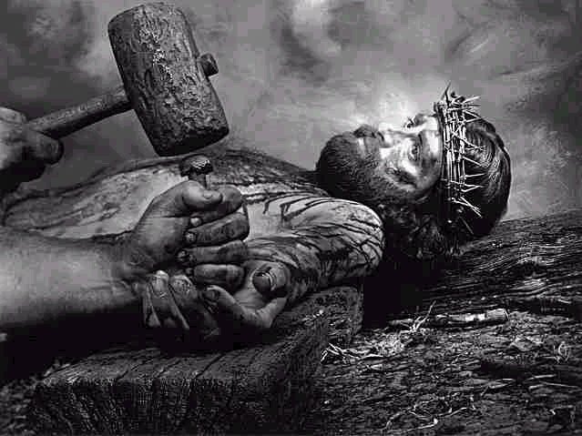 Then nailed upon the cross as his blood gushed.